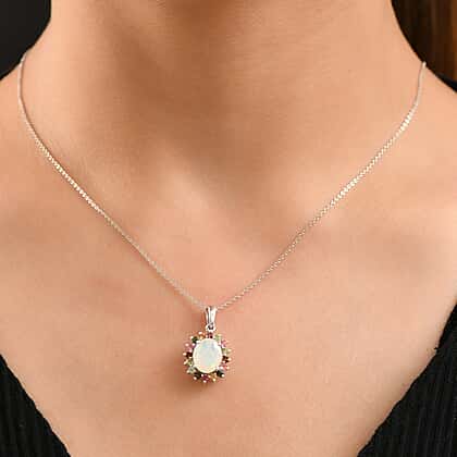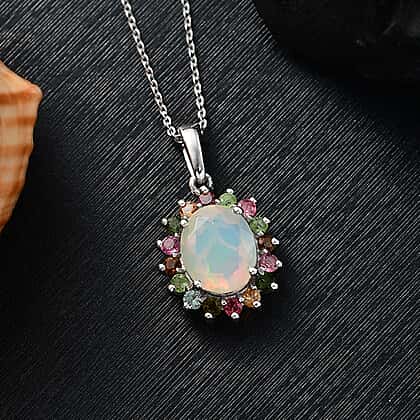 Ethiopian Opal & Multi-Tourmaline Pendant with Chain (Size 20) in Rhodium Overlay Sterling Silver 2.24 Ct.