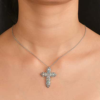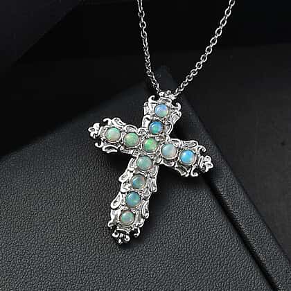 - The pendant features a stunning cross design with eleven genuine Ethiopian opals.