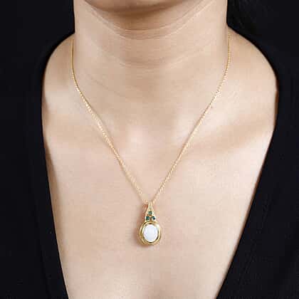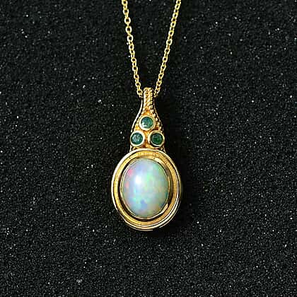 Ethiopian Opal & Premium Emerald Pendant with Chain (Size - 20) in 18K Vermeil Yellow Gold Plated Sterling Silver 2.75 Ct.