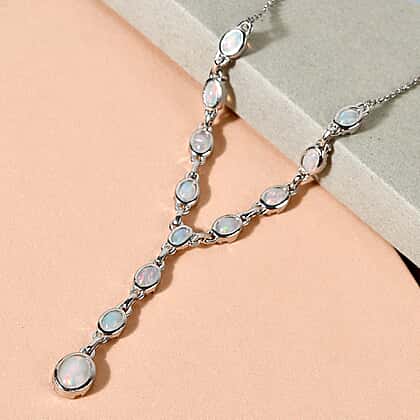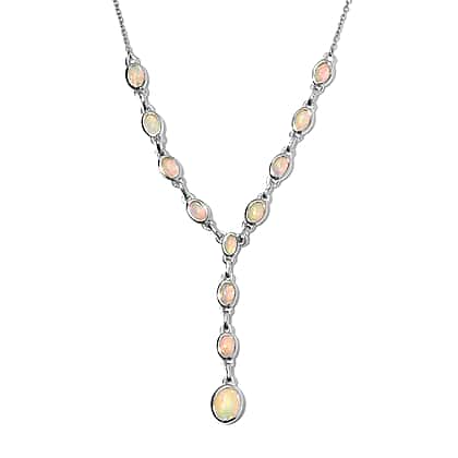 Ethiopian Welo Opal Necklace (Size - 18) in Platinum Plated Sterling Silver 4.52 Ct, Silver Wt. 8.00 Gms