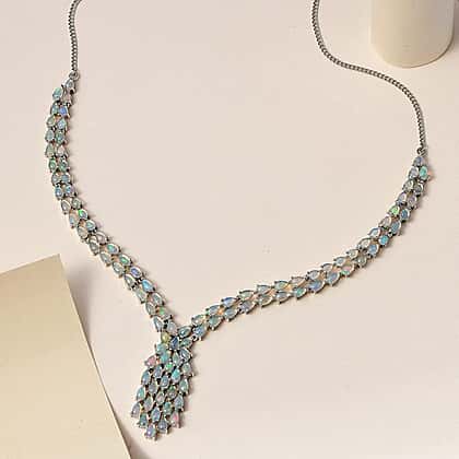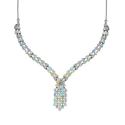 Ethiopian Welo Opal Necklace (Size - 20) in Platinum Overlay Sterling Silver 13.95 Ct, Silver Wt. 18.98 Gms