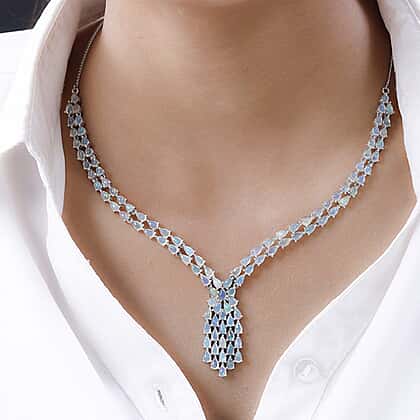 This Opal Necklace is a natural wonder that sits like a string of glistening dewdrops around your neck. Each opal pear captures the iridescence of a rainbow and the fire of a blazing sunset. The immaculate craftsmanship finds an unmatched fluidity of design in the sterling silver body overlaid with the premium finish of platinum. The lobster lock makes wearing this necklace a breeze.