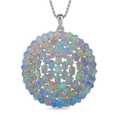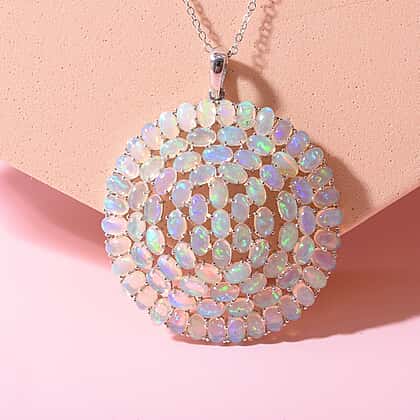 Ethiopian Welo Opal Pendant with Chain (Size 20) in Rhodium Overlay Sterling Silver 12.90 Ct, Silver Wt. 6.50 Gms