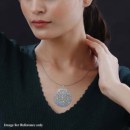 Slip this Ethiopian Welo Opal Pendant around your neck and feel the weight of history, and the beauty of the opals, presenting you in a showstopping elegance. The opals diffusing the light into a million different colours creates a playfulness that is attractive. Silver in rhodium overlay comes out in a platinum-like finish. What are you waiting for? Wear this pendant and embark on a journey of refined statement.