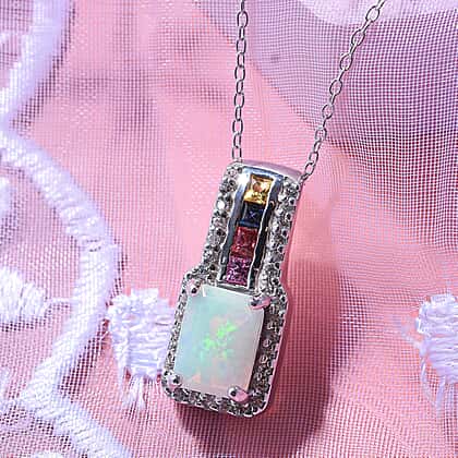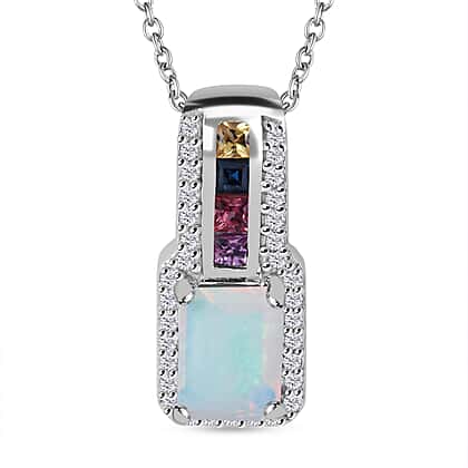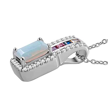 Ethiopian Welo Opal, Rainbow Sapphire and Natural Zircon Pendant with Chain (Size 20) in Rhodium Overlay Sterling Silver 1.44 Ct.