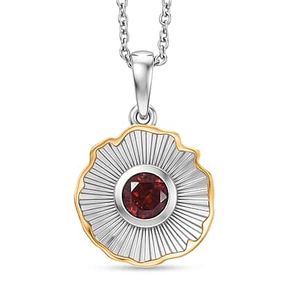 EverTrue - Red Garnet Solitaire Pendant with Chain (Size 20) in Yellow Pen Plating 1.02 Ct.