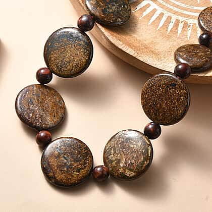 - Features brownzite jasper in a deep chocolate hue, captures attention.