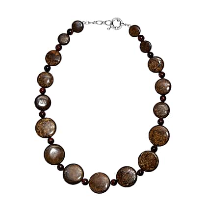 EverTrue Brownzite Jasper & Red Tiger Eye Necklace (Size 20) in Platinum Overlay 485.00 Ct.