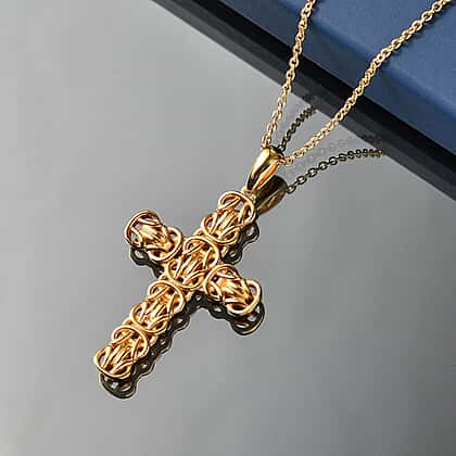 EverTrue Cross Pendant with Chain (Size 20) in Yellow Gold Tone
