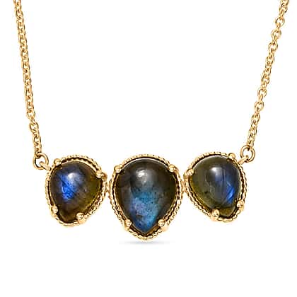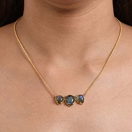 EverTrue Labradorite Trilogy Necklace (Size - 20) Pure Yellow Brass Mix Metal 10.56 Ct.