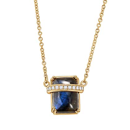 EverTrue Labradoride & White Zircon Necklace (Size - 20) In Gold Plated 8.54 Ct.