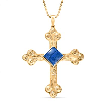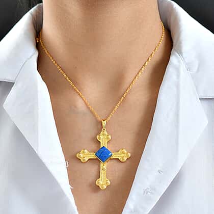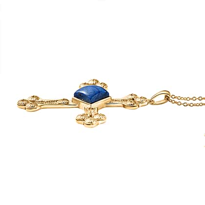 EverTrue Lapis Lagoon Cross Pendant with Chain (Size - 20) in Yellow Gold Tone 7.17 Ct.