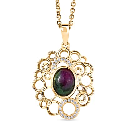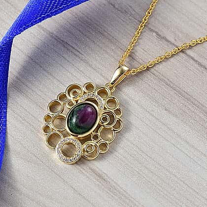 EverTrue Natural Ruby Zoisite & White Zircon Pendant with Chain (Size 20) in Yellow Gold Plated 3.06 Ct.