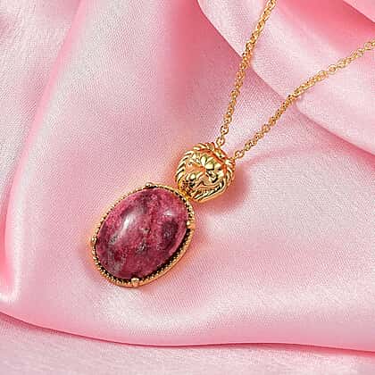 EverTrue Natural Thulite Pendant with Chain (Size 20) in Yellow Gold Plated 15.69 Ct.