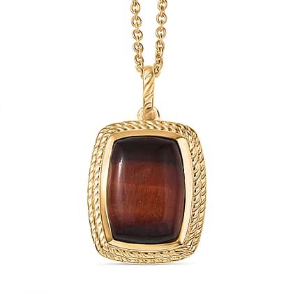EverTrue Red Tiger Eye Pendant with Chain (Size - 20) in Yellow Gold Plated 11.79 Ct.