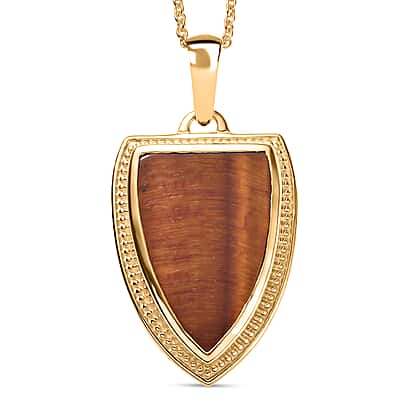 EverTrue Red Tiger Eye Pendant with Chain (Size 20) in Yellow Gold Plated 16.14 Ct.