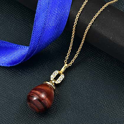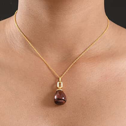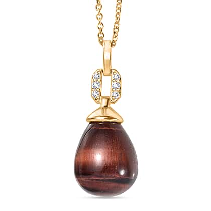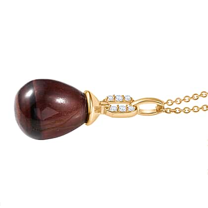 EverTrue Red Tiger Eye & White Zircon Pendant with Chain (Size 20) in Yellow Gold Plated 29.31 Ct.