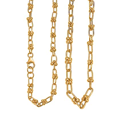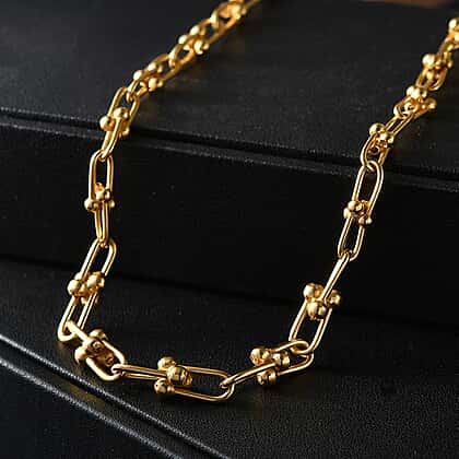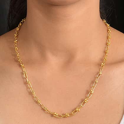 Exclusive Close Out Deal - 22K Yellow Gold Overlay Sterling Silver Industrial Link Necklace (Size - 20) (Limited Stock Only)