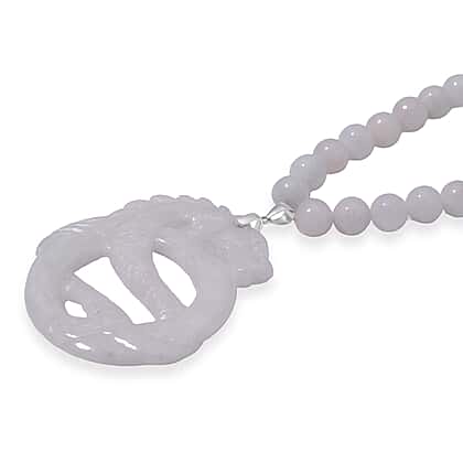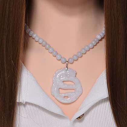 Exclusive Edition - Natural Hand Carved Jadeite Jade Dragon Necklace (Size - 20) with Platinum Overlay Sterling Silver 350.00 Ct