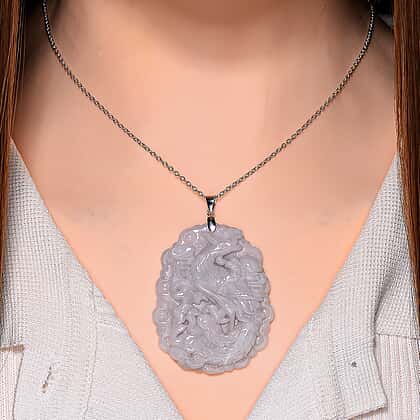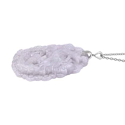 Extremely Rare Find - Carved Jade Pendant with Chain (Size 20) in Rhodium Overlay Sterling Silver 100.000 Ct.