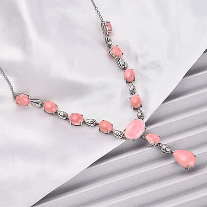 Extremely Rare Find- AAA Pink Conch Shell Necklace (Size - 20) in Rhodium Overlay Sterling Silver 84.00 Ct.