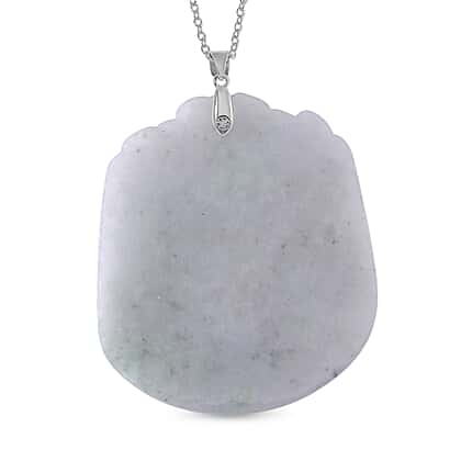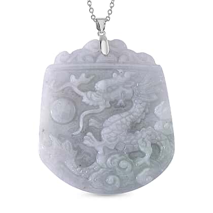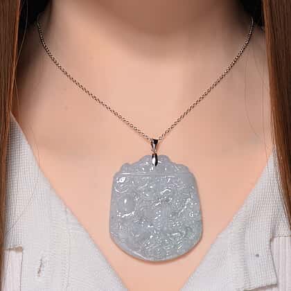 Extremely Rare Find - Dragon Carved Natural Jadeite Jade Pendant with Chain (Size 20) in Rhodium Overlay Sterling Silver 150.00