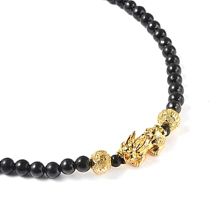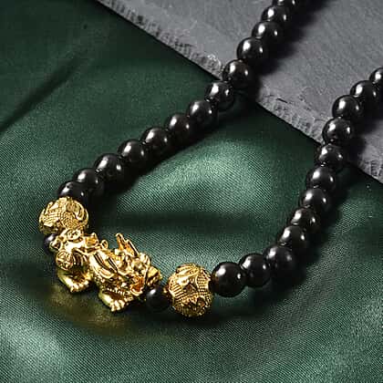 7-9 mm Feng Shui Elite Shungite Necklace in Gold Tone