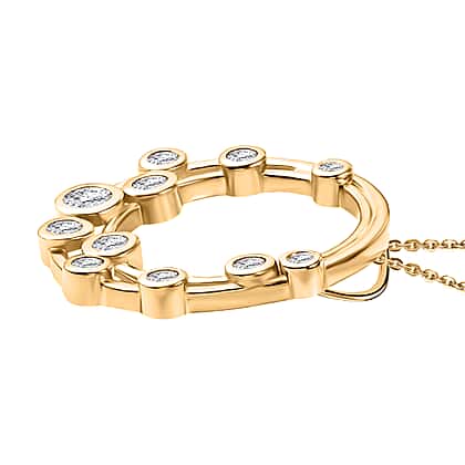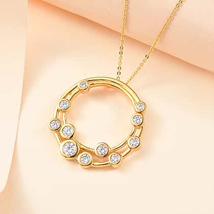 Finest CZ Pendant with Chain (Size 20) in 18K YG Vermeil Sterling Silver 1.28 ct Silver Wt. 6.6 Gms 1.730 Ct.
