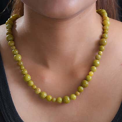 This is a rare green opal beads necklace that will amplify your minimalistic and elegant tastes in life. The necklace drops to a Matinee length of 20 inches which is just about perfect to highlight the neckline of a designer evening outfit or a casual day-time sundress. The muted green hues of the opal beads stirs up a picture of evening forest drinking in the last rays of the setting sun.