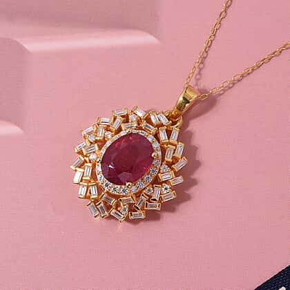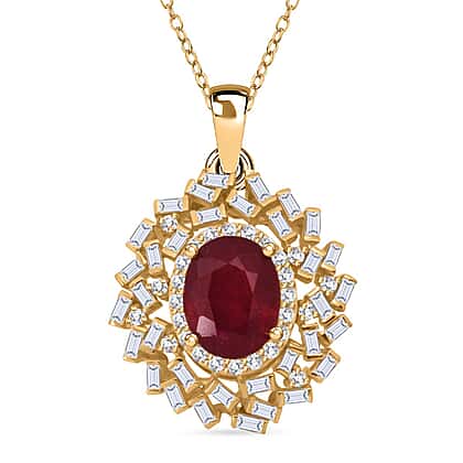 Fissure Filled Ruby, Moissanite Pendant with Chain (Size 20) in 18K YG Vermeil Sterling Silver 0.80 ct 3.200 Ct.