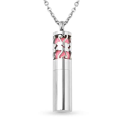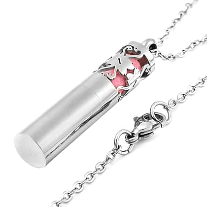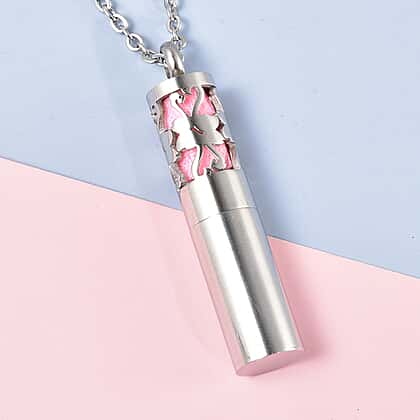 Openable Cylindrical Flamingo Necklace Size 24 in Silver Tone