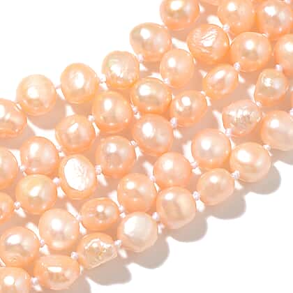 - Freshwater peach pearls arranged in multi strands for a classic vintage look