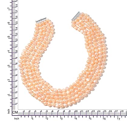 Fresh Water Peach Pearl Multi Strand Beaded Necklace in Rhodium Plated Silver 18 Inch