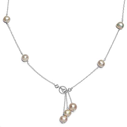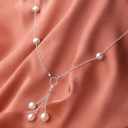 Flaunting a mature and classy design, this station necklace features freshwater pearls woven into an eye-catching silver frame. The alternating theme of free-faceted pearls with a slender chain is exciting to look at. The triple pearl drop lends the look of a pendant that brings out your chic and carefree spirit. The sterling silver frame adds to its fab looks and makes it a classy all-occasion jewellery.