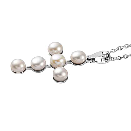 Fresh Water Pearl Pendant with Chain (Size 20) in Platinum Overlay Sterling Silver