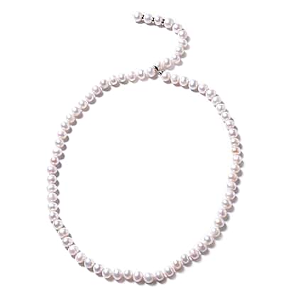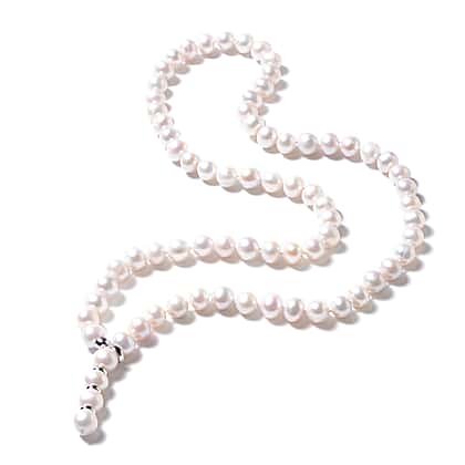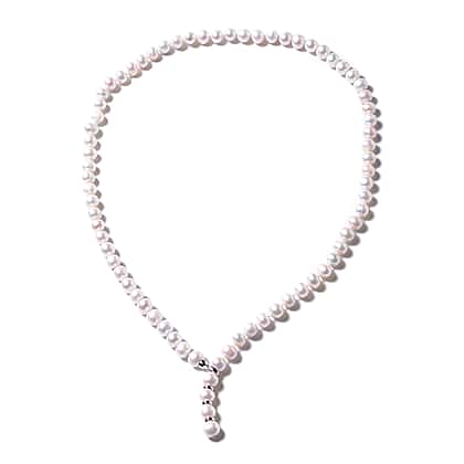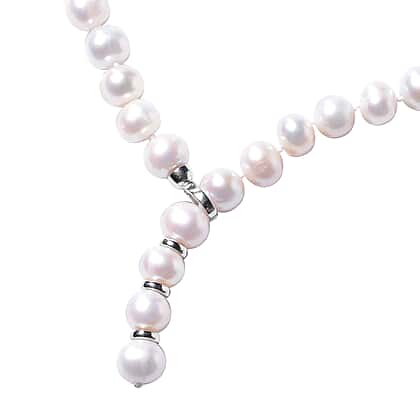 Freshwater Pearl Beaded Necklace in Rhodium Plated Sterling Silver 29 Inch Adjustable