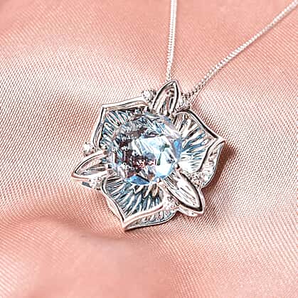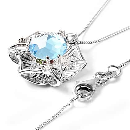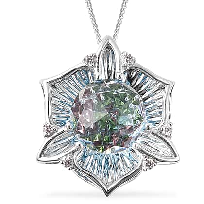 Galatea DavinChi Cut Collection - Blue Topaz, Chrome Diopside, Natural Cambodian Zircon and Mozambique Garnet Pendant with Chain (Size 18) in Rhodium Overlay Sterling Silver 4.31 Ct.