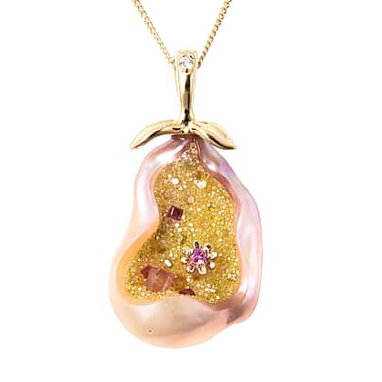 Galatea Pearlantical Collection - Golden Druzy Quartz and Multi-gems Pendant with Chain in Yellow Gold Plated Sterling Silver