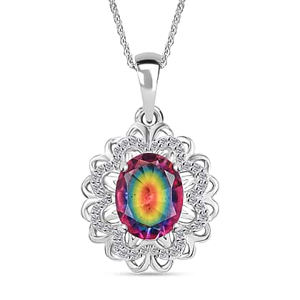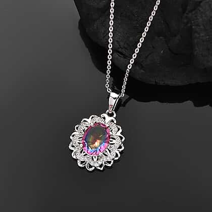 Galaxy Glow Nebula Quartz & White Zircon Pendant with Chain (Size 20) in Rhodium Overlay Sterling Silver 2.38 Ct.