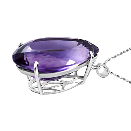 Gemfield Amethyst 100 Carat Solitaire Pendant with Chain (Size 24) in Platinum Overlay Sterling Silver