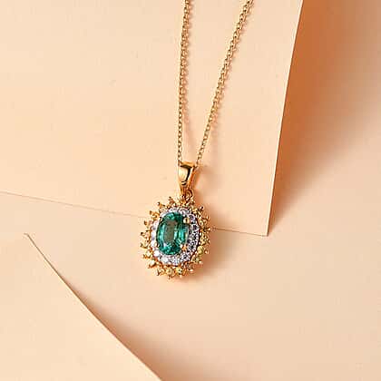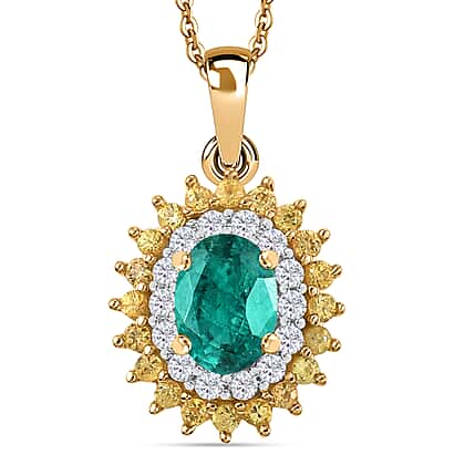 Gemfields Zambian Emerald, Yellow Sapphire & Moissanite Pendant with Chain (Size - 20) in 18K Yellow Gold Vermeil Plated Sterling Silver 1.62 Ct