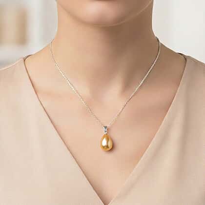 - Golden shell pearl pendant offers a timeless, luminous elegance.