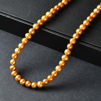 Embrace the enchanting allure of pearls with this golden dyed pearl necklace, a masterpiece crafted to bring everlasting sophistication and glamour. Featuring captivating golden pearls, making the piece suitable for layering or solo wear that complements every outfit. The classic iridescence of the pearl adds a spark and glow to the necklace, making it a must-have piece of jewellery. Ideal for evening parties, weddings, or special gifting, this luxurious statement is undoubtedly a piece to treasure for generations. This perfect piece is waiting to shine around your neck.