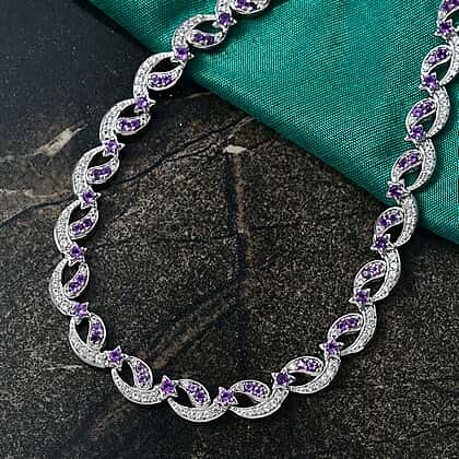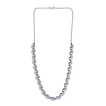 GP - Celestial Dream Collection African Amethyst, Blue Sapphire & White Zircon Multi Row Necklace (Size 20) in Rhodium Overlay Sterling Silver 6.39 Ct, Silver Wt. 27.44 Gms.