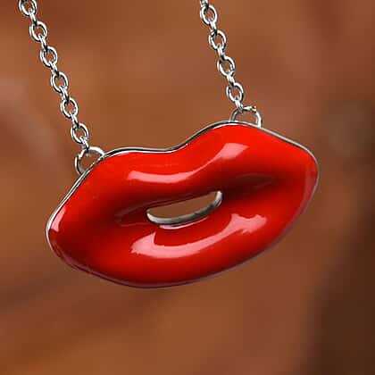 GP Kiss Necklace Blue Sapphire Lips Necklace in Platinum Plated Silver 20 Inch