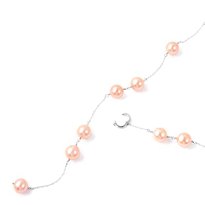 GP - Peach Edison Pearl & Diamond Adjustable Lariat Necklace (Size 24) in Rhodium Overlay Sterling Silver