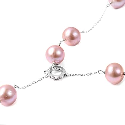 GP - Purple Edison Pearl, Diamond and Blue Sapphire Adjustable Lariat Necklace (Size 24) in Rhodium Overlay Sterling Silver