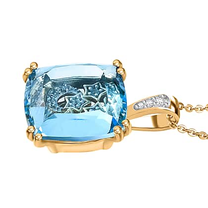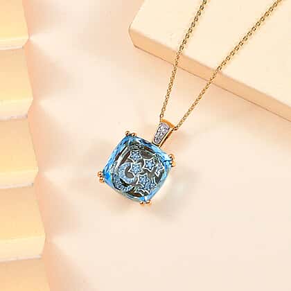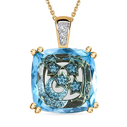 GP Celestial Collection - Skyblue Topaz, White Zircon, & Blue Sapphire Pendant with Chain (Size 20) in 18K Vermeil Yellow Gold Plated Sterling Silver 8.91 Ct, Silver Wt. 6.41 Gms.