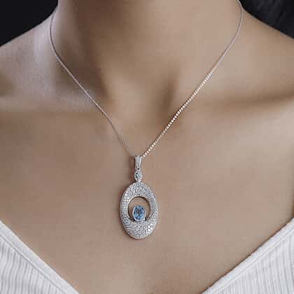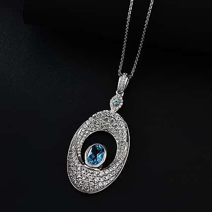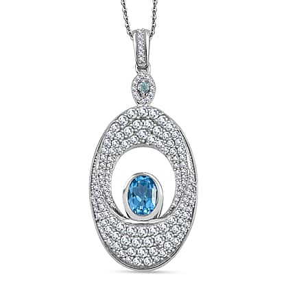 GP Evil Eye Collection - Swiss Blue Topaz, White Zircon, Blue Apatite Pendant with Chain (Size 20) in Rhodium Overlay Sterling Silver 4.24 Ct.