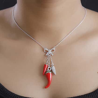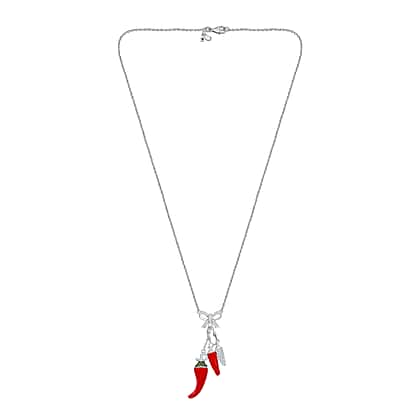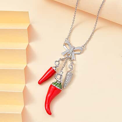 GP Chilli Pepper Collection - Natural Chrome Diopside, White Zircon Necklace With Lobster Clasp (Size - 20) in Rhodium Overlay Sterling Silver 2.05 Ct.